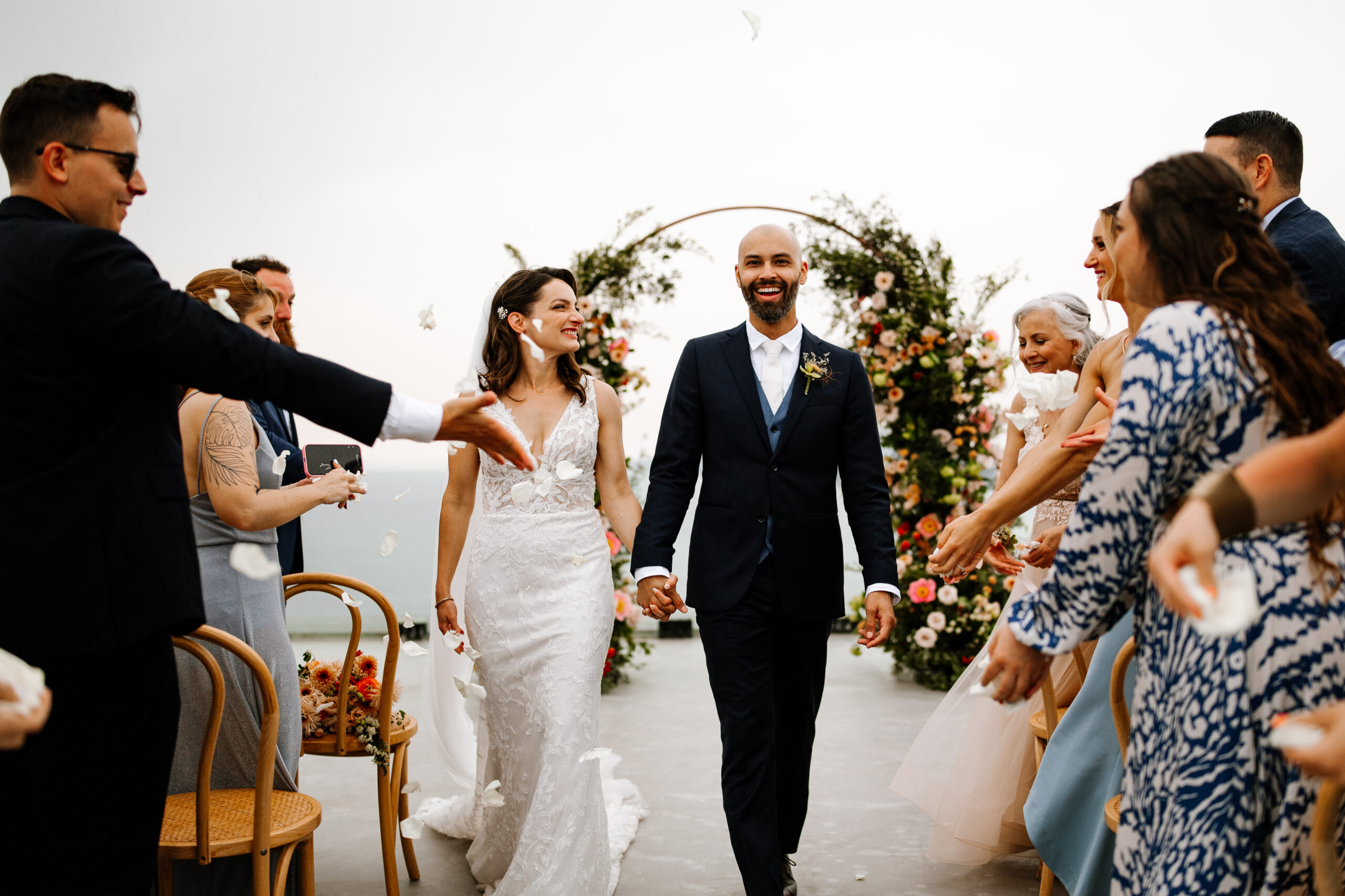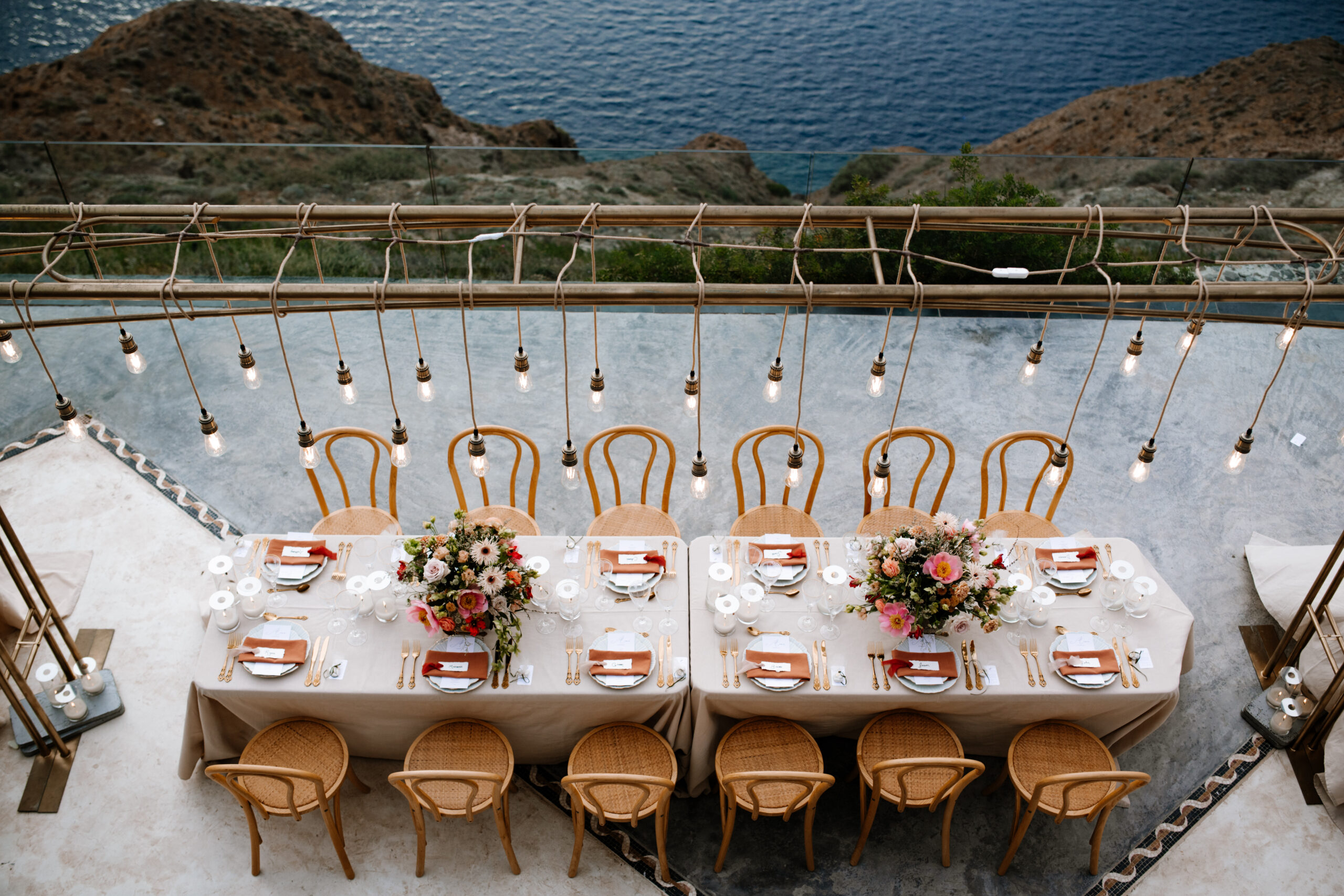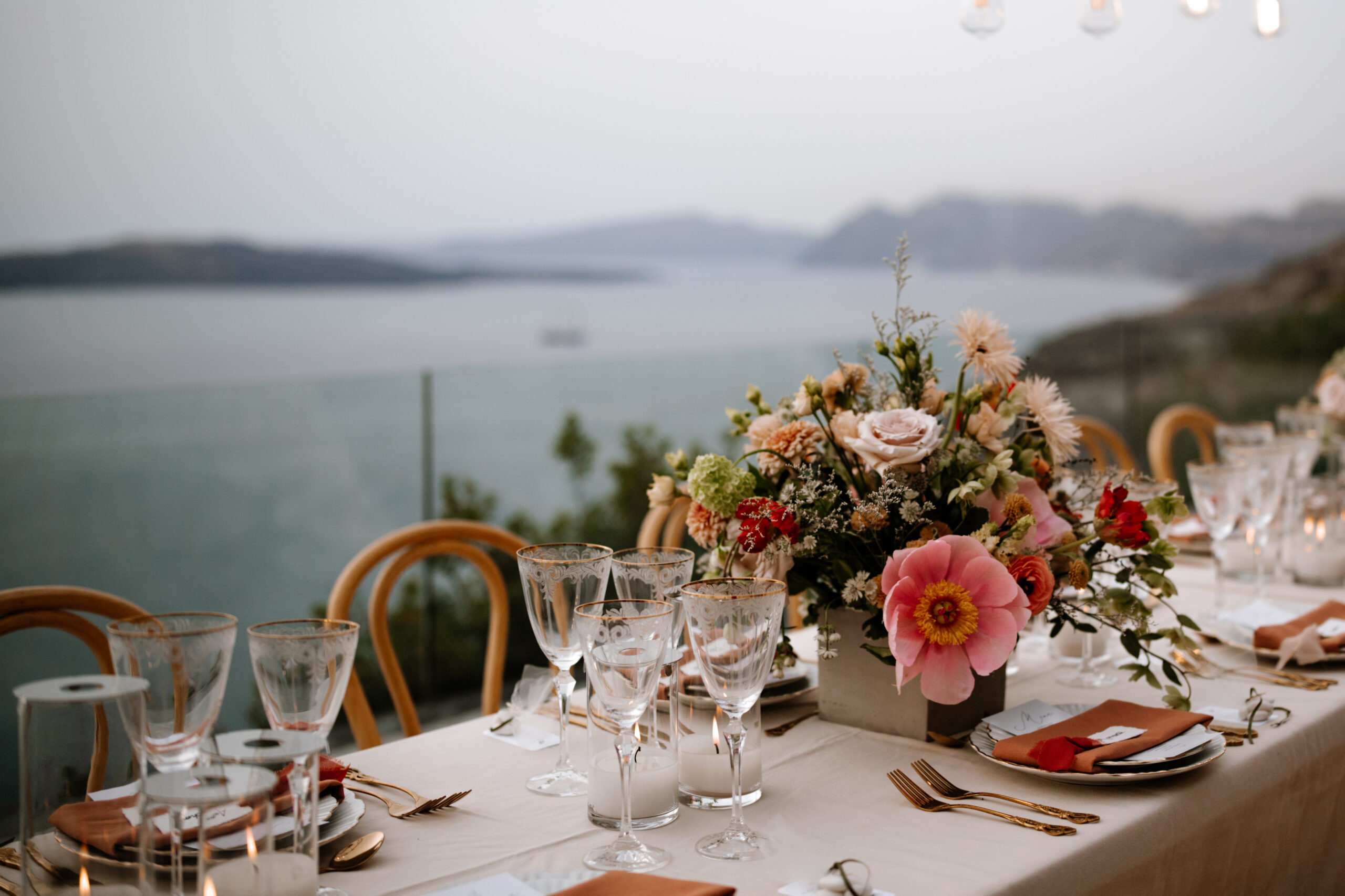 Perched high on the caldera cliffs near Akrotiri, Cavo Ventus is one of Santorini’s most breathtaking private wedding venues. This exclusive estate offers uninterrupted views of the volcano and Aegean Sea, creating a dramatic backdrop for ceremonies and sunset celebrations. The spacious terrace is the heart of the venue, ideal for outdoor ceremonies, cocktail hours and elegant receptions under the stars. With its elevated position and panoramic views, every moment feels spectacular. Cavo Ventus also features stylish on site accommodation, allowing couples and their closest guests to stay together and enjoy a relaxed, multi day wedding experience overlooking the Santorini caldera.