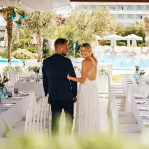 Ideally situated along the stunning Ixia Bay, the Sheraton Rhodes Resort is one of the most elegant and versatile wedding venues in Rhodes. Combining five-star hospitality with breathtaking sea views, this luxury hotel offers everything you need for a seamless destination wedding in Greece — from ceremony to reception and guest accommodation.